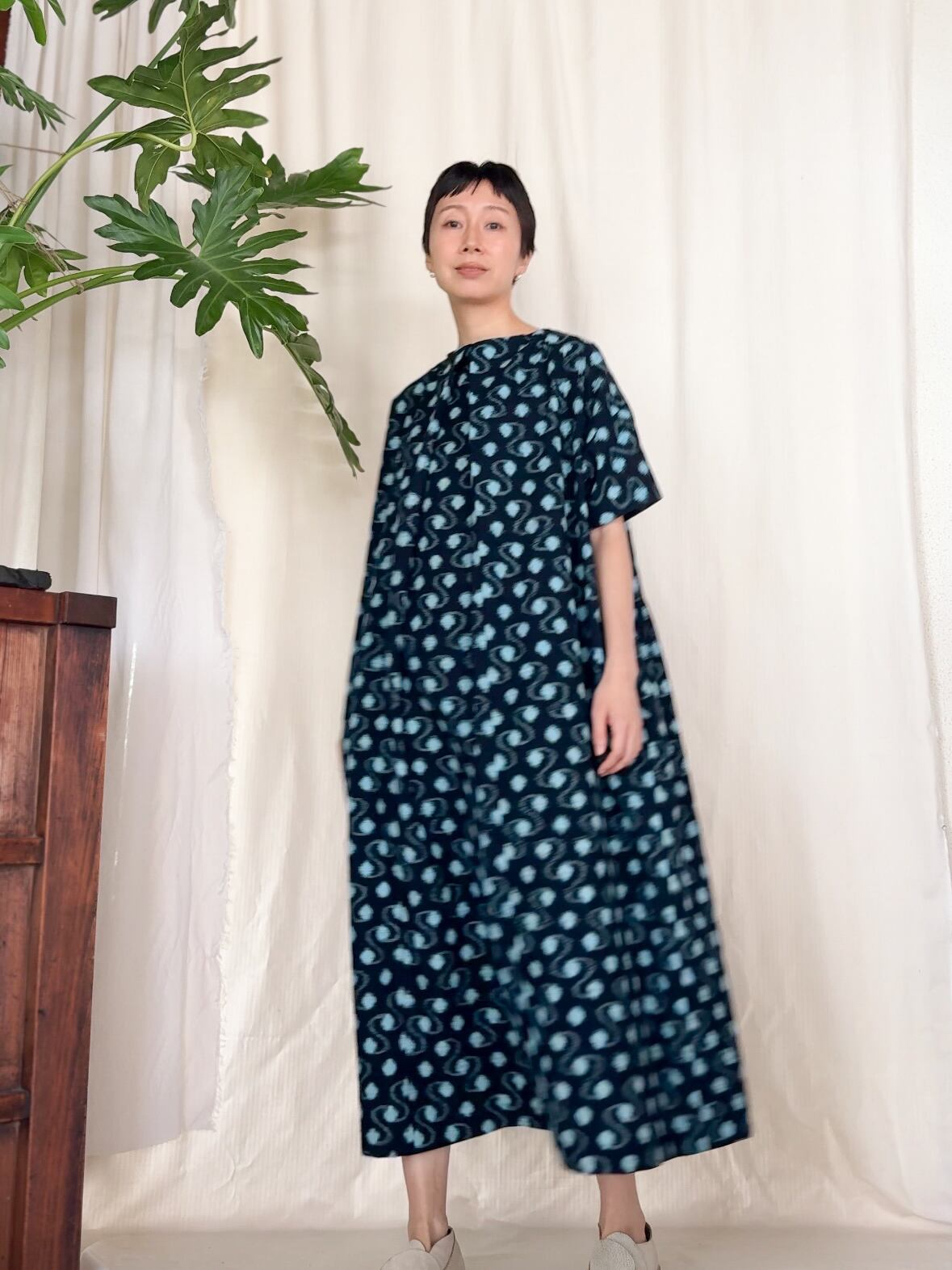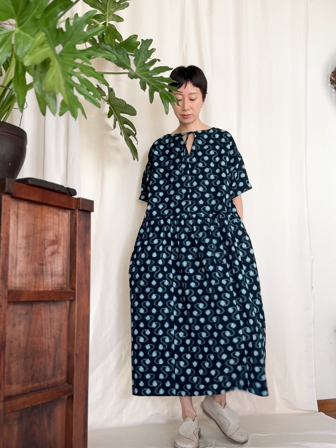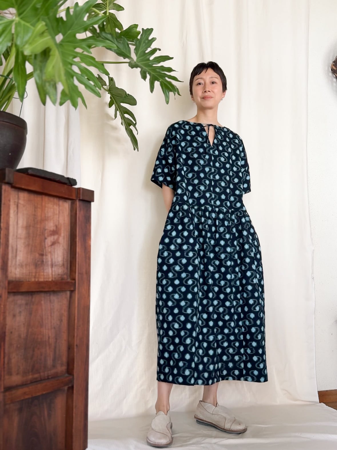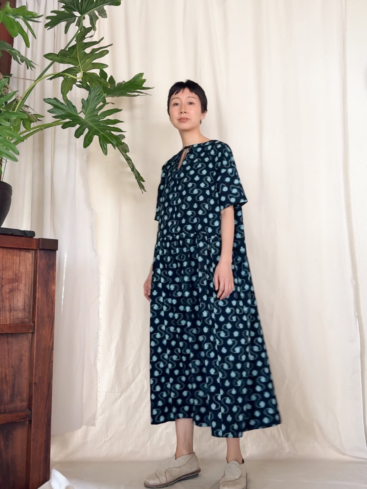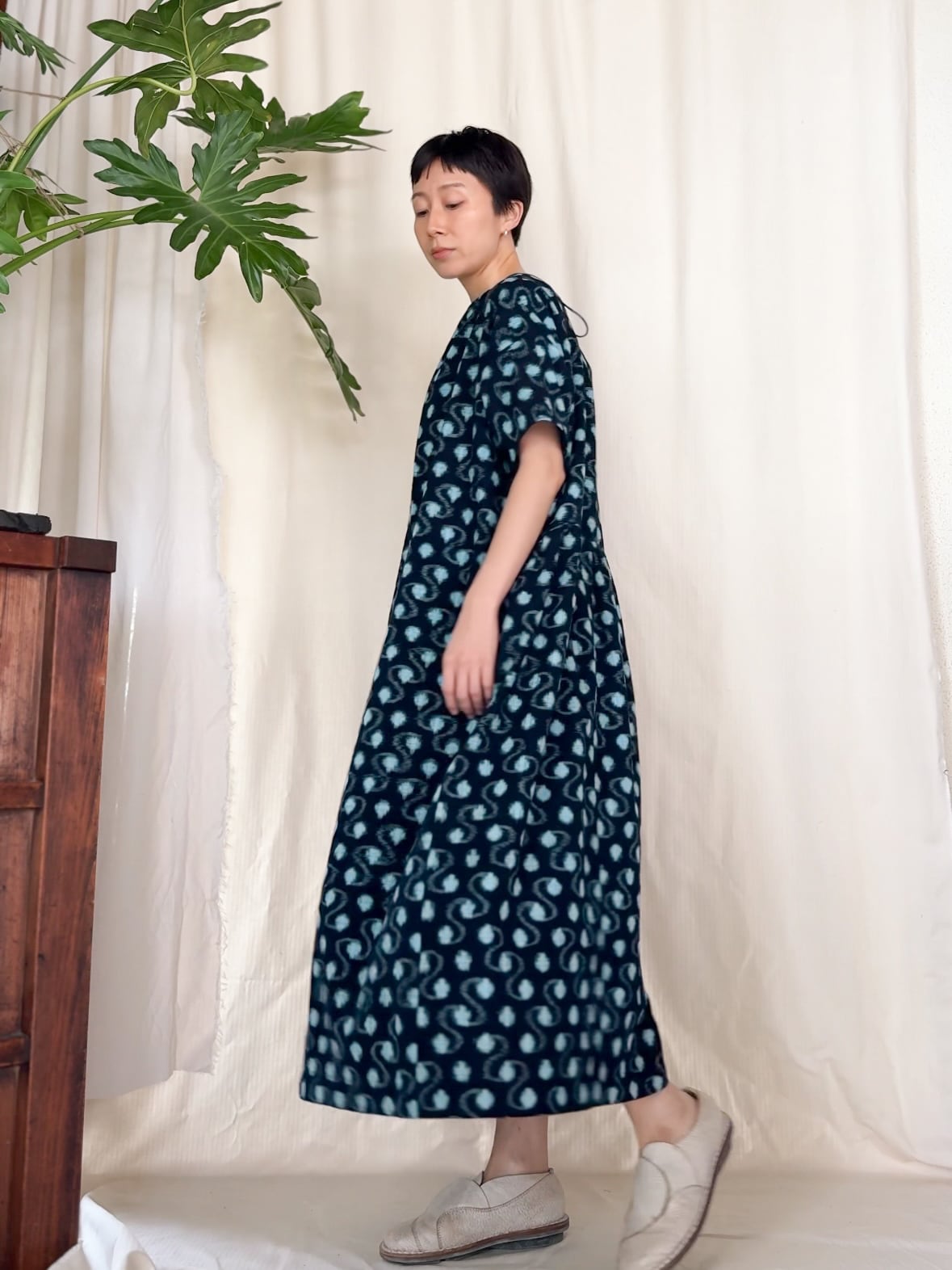 Moon dress- Bingo kasuri kimono, Cotton 備後絣木綿