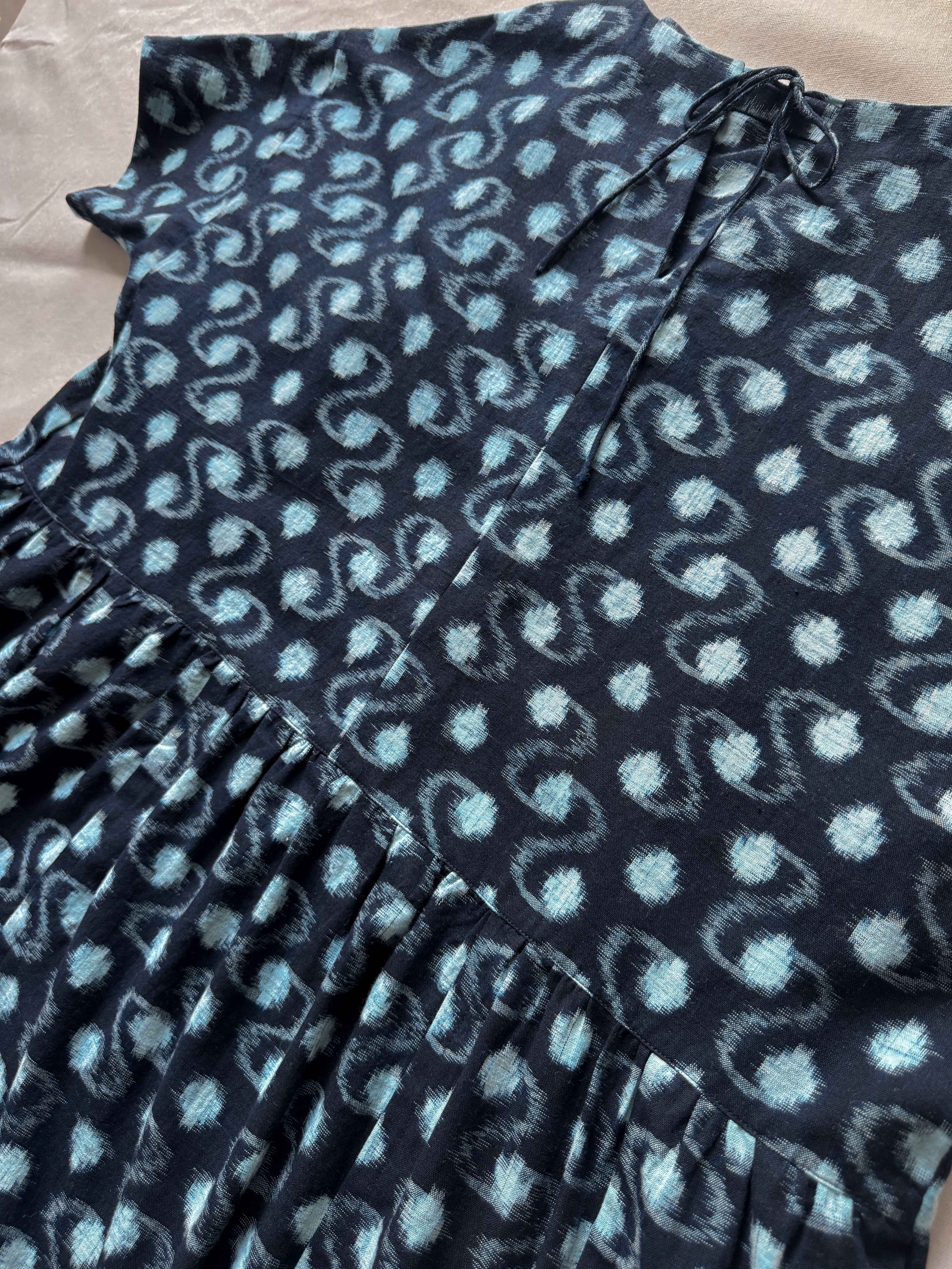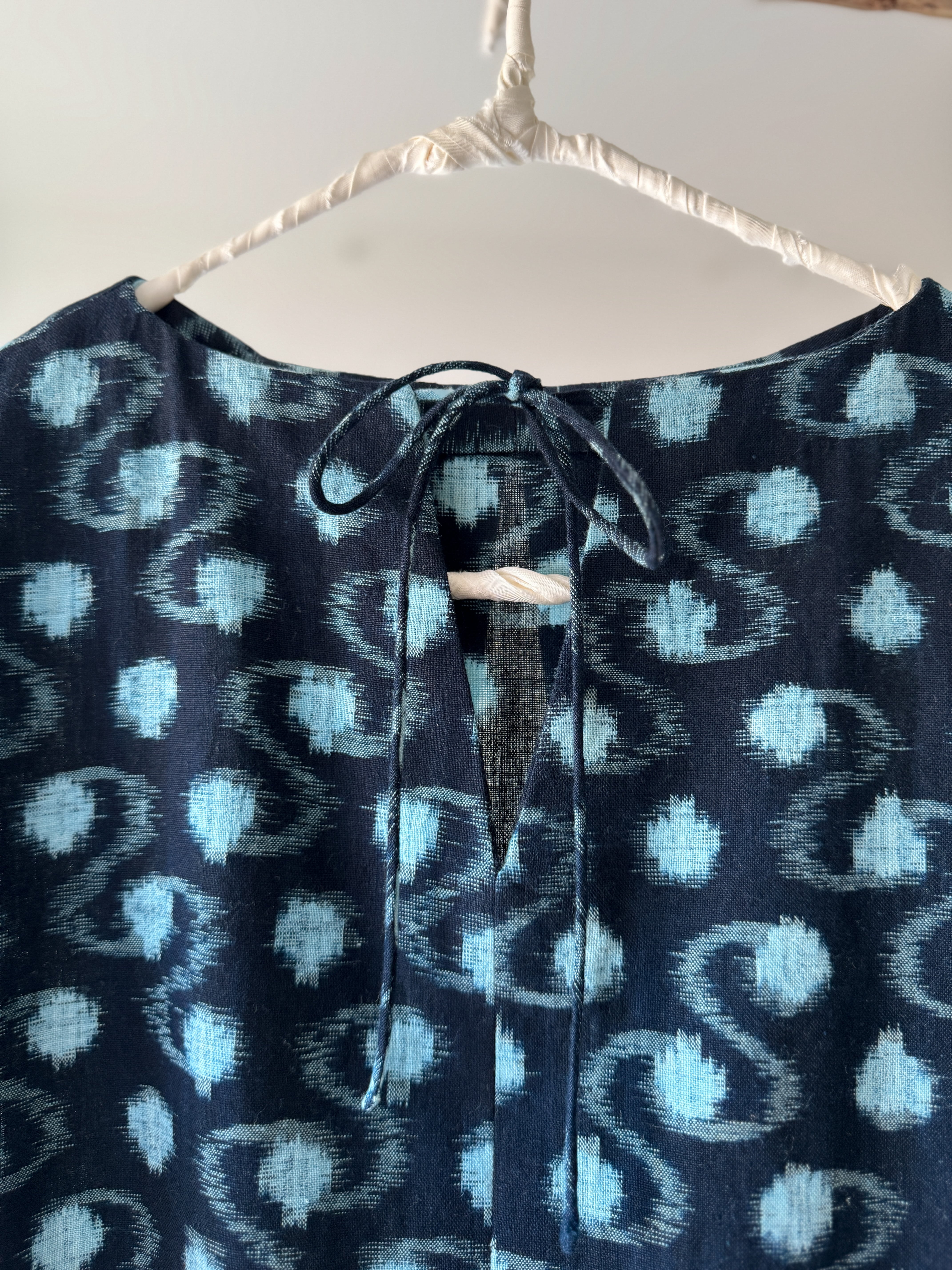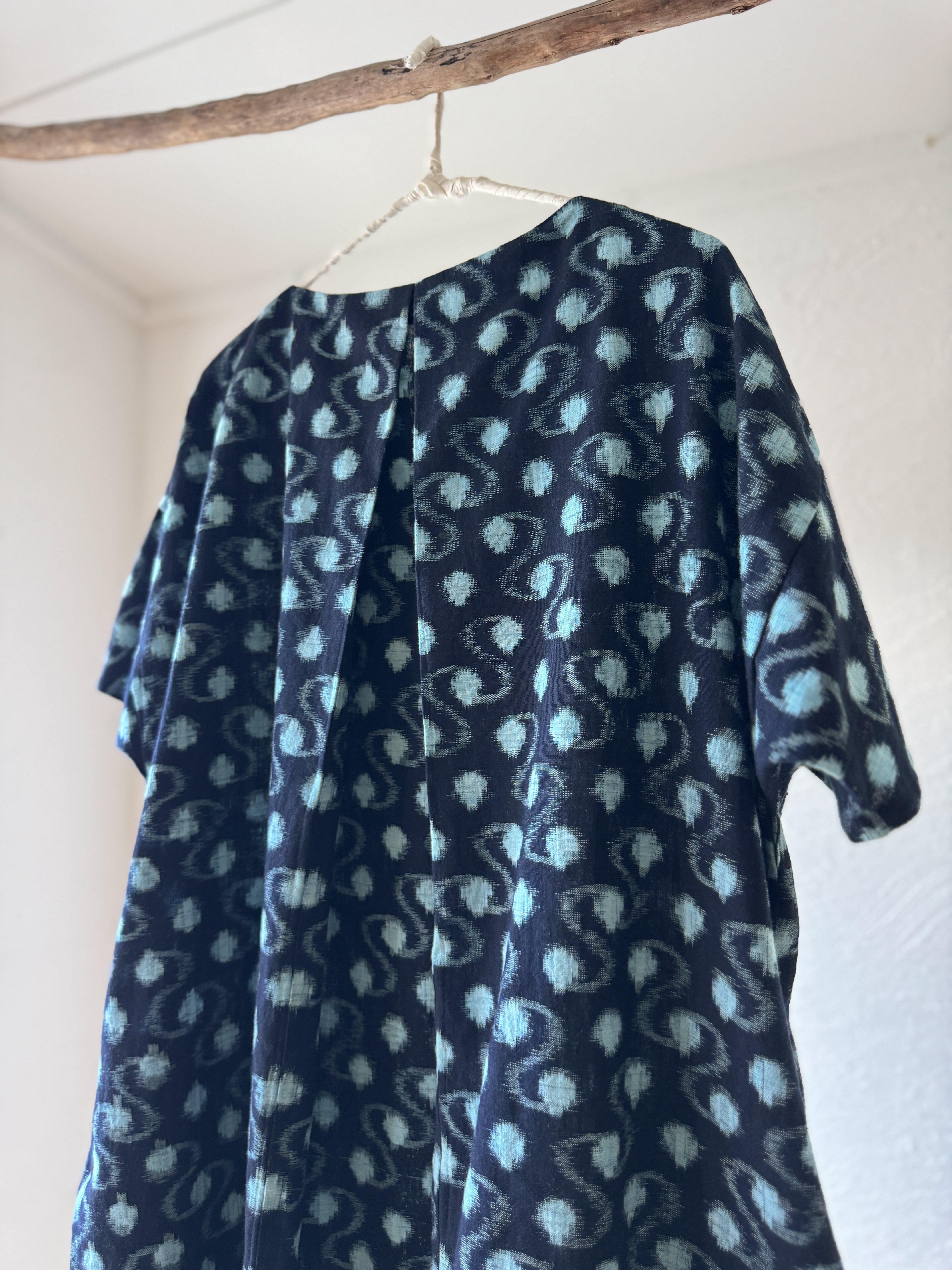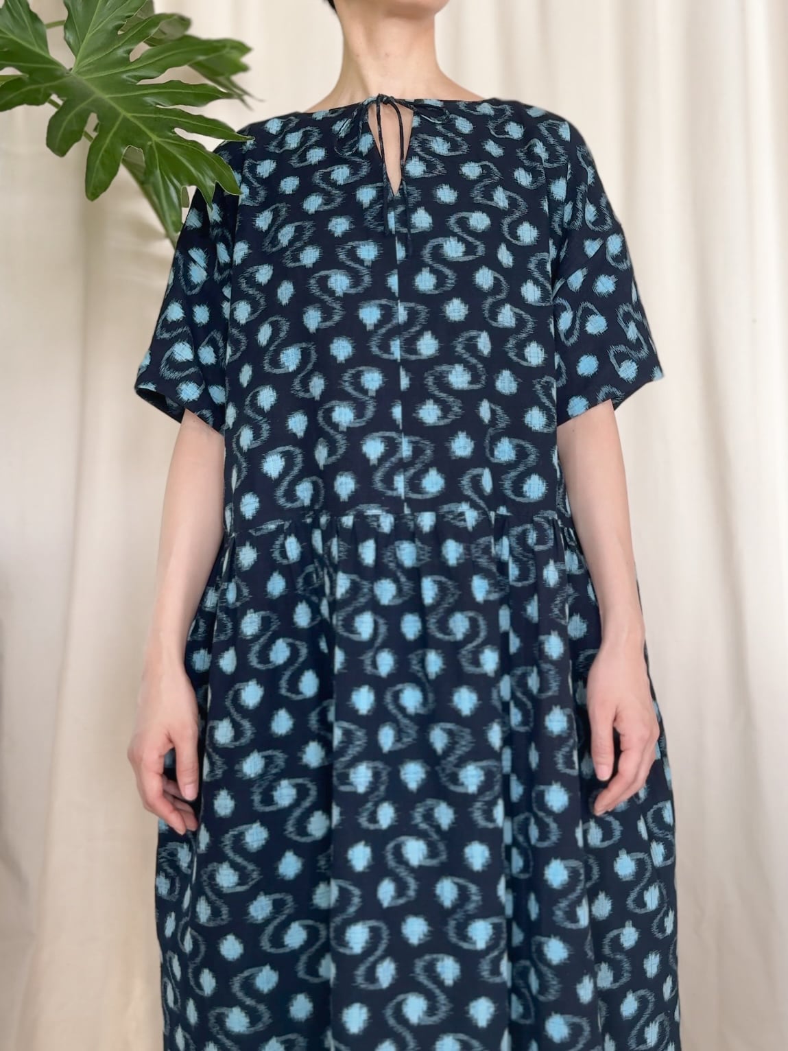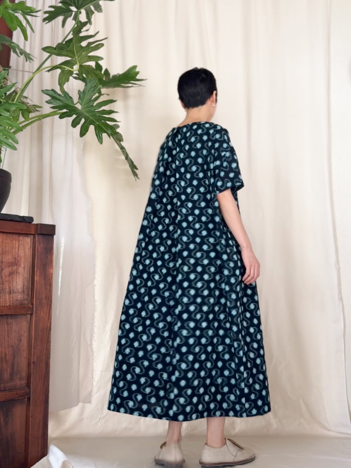 Moon dress- Bingo kasuri kimono, Cotton 備後絣木綿