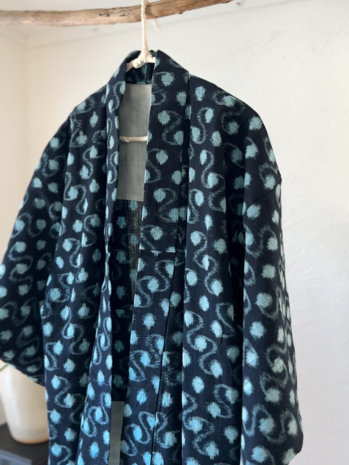 Made from vintage Bingo Kasuri: Japanese ikat weaving cotton kimono, a traditional Japanese fabric known for