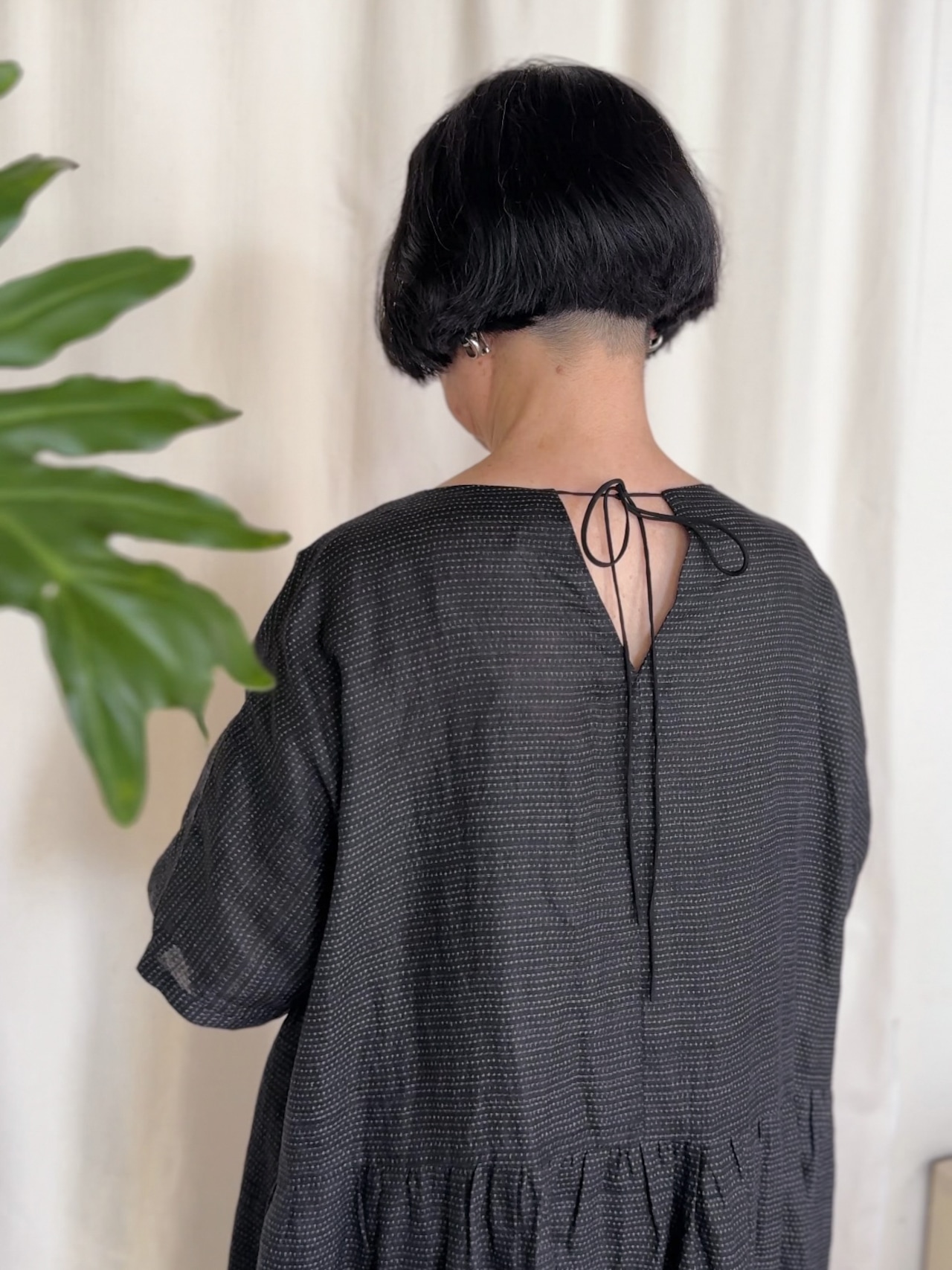 後ろは背中心に一つ大きなタックを寄せ縦のラインに。