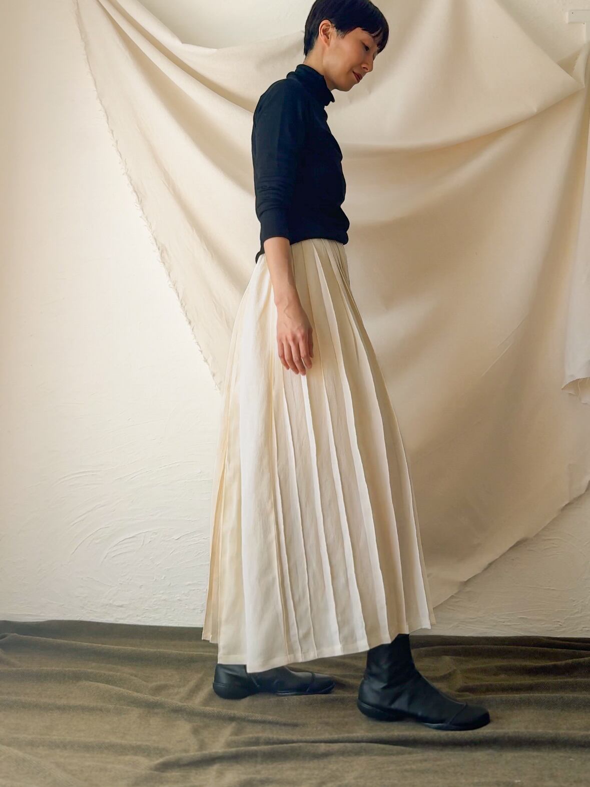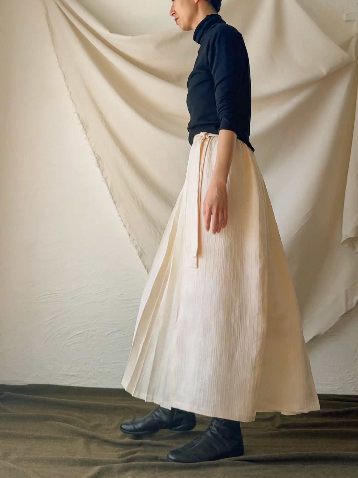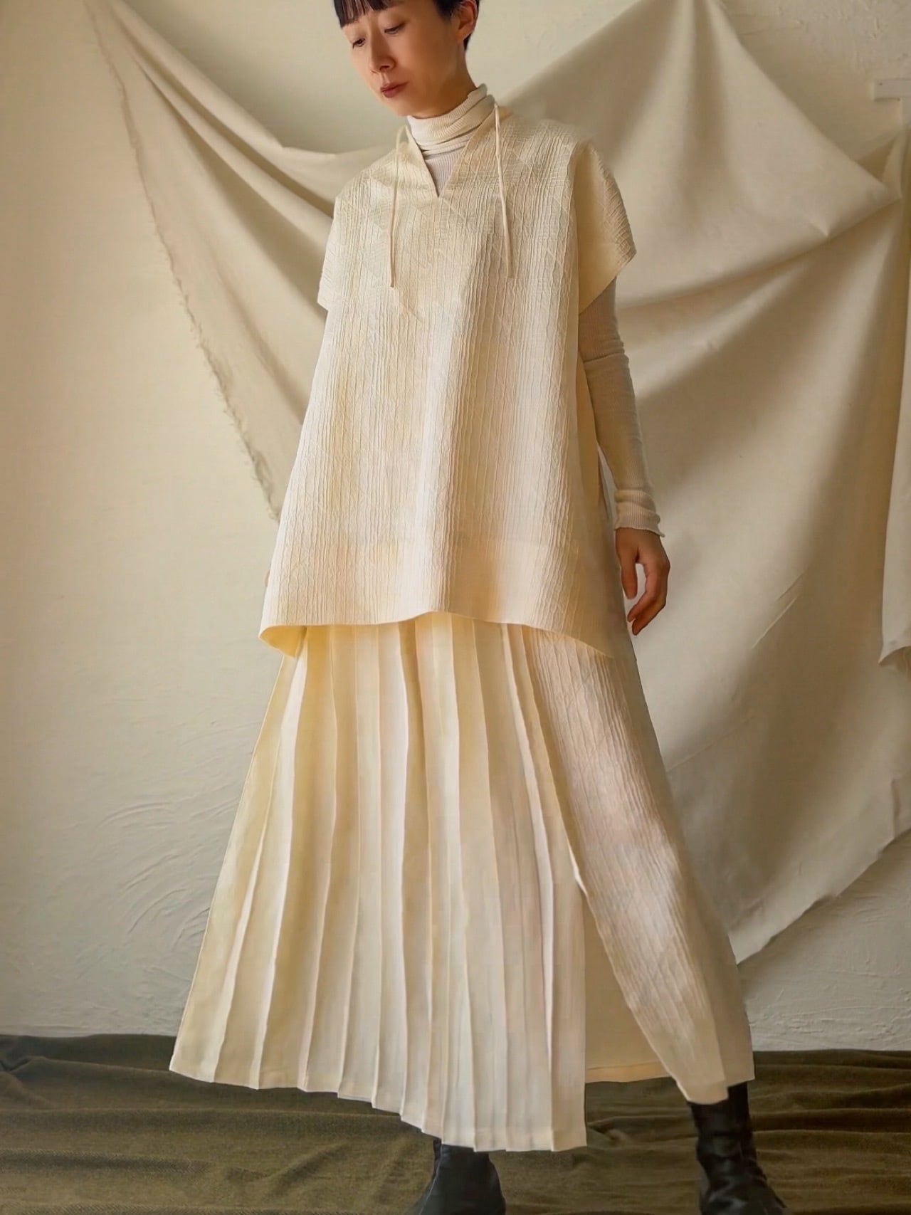 変則的なプリーツやギャザーによる動きが表情をより豊かに。