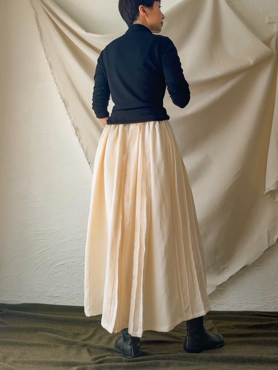 Pleats & gather silk skirt- Tango Chirimen kimono, 丹後ちりめんスカート