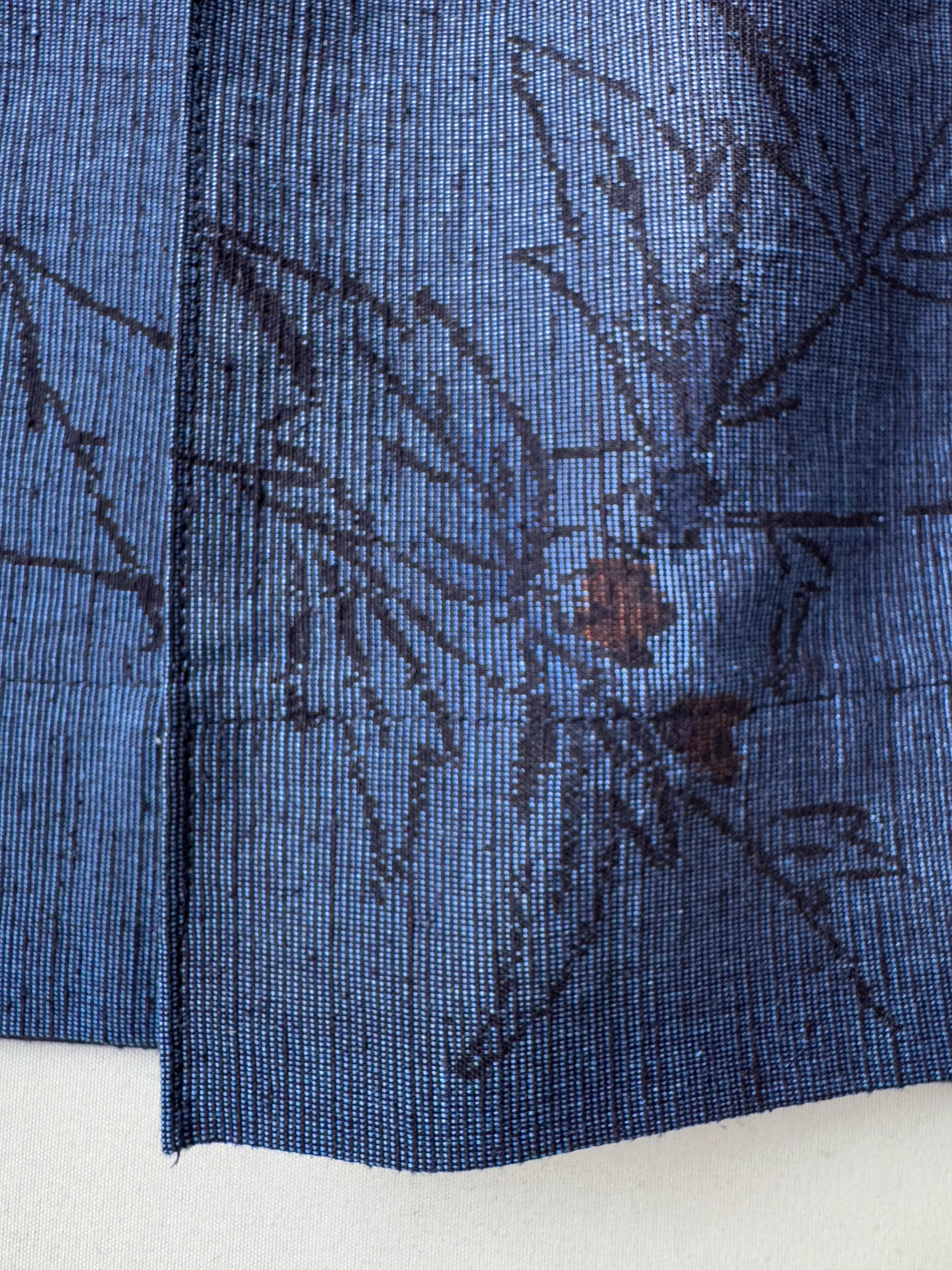 high-quality Yuki Tsumugi silk in an asymmetrical design.